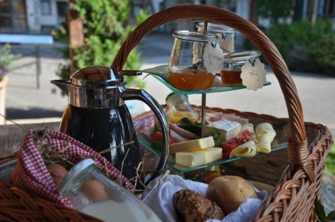 reichhaltigen Frühstückskorb in ihre Ferienwohnung,